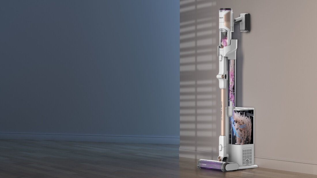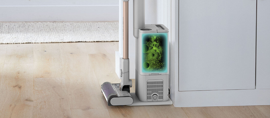Odkurzacz automatycznie opróżnia się na stacji dokującej po każdym cyklu sprzątania. Duża, bezworkowa stacja bazowa o pojemności 2 litrów odsysa brud z odkurzacza i przechowuje go wewnątrz. Dzięki temu, baza wystarcza na około 45 dni sprzątania. Po zakończeniu czyszczenia wystarczy umieścić odkurzacz na stacji bazowej, a urządzenie samo się opróżni.